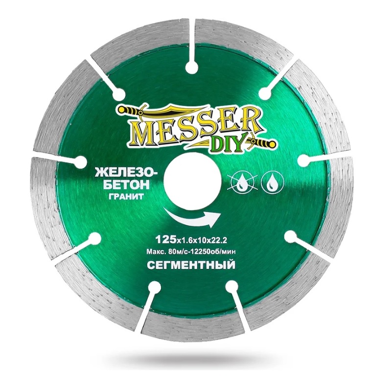 Диск алмазный сегментный MESSER DIY 01.125.016 предназначен для угловых шлифовальных машин и ручных резчиков. Применяется для сухого реза по железобетону и граниту.