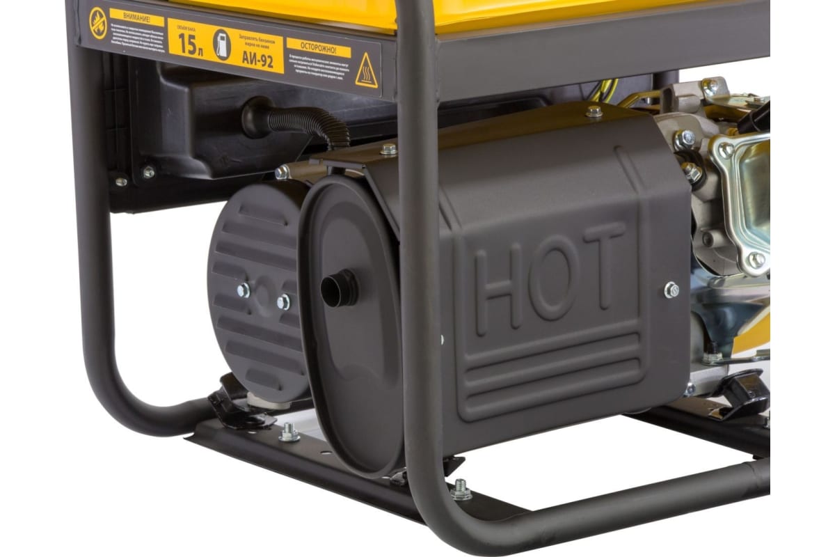 Во время работы, демпферная система гарантирует минимальное количество вибраций, так что все узлы генератора Champion GG6500 устанавливаются на нее. Пластиковые крышки предотвращают попадание влаги и пыли на контакты розеток, что позволяет исключить их негативное воздействие. Металлическая силовая рама надежно защищает оборудование от механических повреждений, обеспечивая его безопасность.