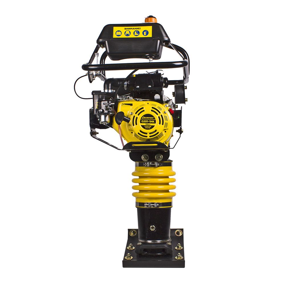 Вибротрамбовка Champion TR72 с бензиновым двигателем объемом 196 куб.см применяется на промышленных и бытовых строительных площадках при укладке тротуарной плитки, брусчатки и асфальтирования.