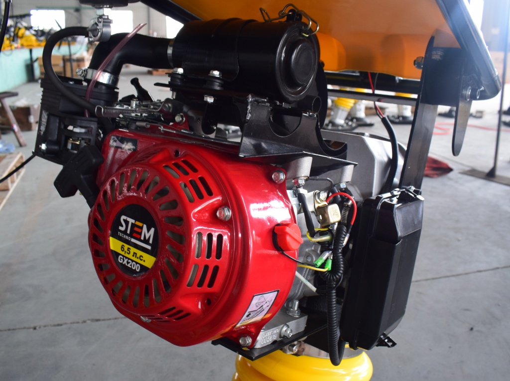 Вибротрамбовка STEM Techno STR 82 предназначена для уплотнения связных грунтов, песчаных и гравийных оснований. Модель оснащена бензиновым двигателем STEM GX200 мощностью 6,5 лошадиных сил. Слойная подошва из древесины и стали обеспечивает эффективное поглощение вибрации. Управление трамбовкой осуществляется с помощью удобного рычага дроссельной заслонки, что позволяет плавно регулировать работу оборудования. Сила удара составляет 12 кН. Объем топливного бака - 2,8 литра, а вес трамбовки – 75 кг.